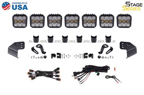 Features Bolt-on fitment compatible with Ford Bronco 2021 Ultra-high intensity, with custom-engineered TIR optics Selectable backlight color, with eight color options Torture-tested, heavy-duty construction Control through factory aux switch bank using the included harness Assembled in USA Overview Perfect Fitment. The Windshield CrossLink Lightbar Kit compatible with Ford Bronco 2021 from Diode Dynamics allows you to mount seven linked SS5 LED pods above the factory windshield. These application-specific brackets were CAD-designed to bolt into place using factory mounting points above the factory windshield. No cutting or drilling required! Designed for Performance. Featuring the highest output intensity of any 5-inch LED pod on the market, these lamps have been designed for maximum functionality, with patented technology and custom-engineered TIR optics, all in a durable package. Selectable Backlight. The SS5 LED Pods included in the White kit feature a selectable backlight with eight different color options, perfect for extra styling, or for more visibility when you’re not using the main beam. Selecting your backlight color is easy - simply alternate the power on and off. There’s no complicated programming with a controller! The SS5's backlight fully illuminates the TIR optic, providing unique accent lighting that you won't find on other LED pods. NOTE: Due to the yellow lens, the Yellow kit is only available with an Amber backlight. CrossLink. Our patent-pending CrossLink technology allows you to link up to eight SS5 pods together to create your own lightbar. The single-piece CNC aluminum link provides extreme rigidity, but is fully adjustable, for both straight and curved configurations.