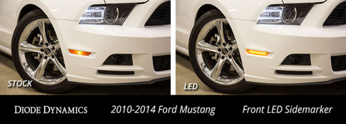 Features Modern LED replacements compatible with Ford Mustang 2010-2014 factory sidemarkers Increased output, with LED styling Plug-and-play installation, no modification needed Includes four sidemarkers, to replace both front and rear OEM-grade retroreflector optics Engineered and assembled in USA Overview Upgraded Styling. If you're looking to give your vehicle an upgrade in styling and appearance, this is the perfect way to do it! These replacement units are loaded with hundreds of LEDs, for a modern and unique appearance. With the full LED array, they illuminate brighter than factory as well! Choose from three lens color options to match your vehicle or preference. OEM Grade. Unlike others on the market, the Diode Dynamics LED sidemarkers use OEM-grade retroreflector optics, which provide required the reflective safety and a clean, premium appearance when off. Compare this to "diffuser" or plain flat lenses, without any reflective features. The units themselves are designed directly from OEM CAD data for a perfect fit, and the connector plugs right into the factory socket. Reliability. Like most Diode Dynamics products, these Sidemarker LEDs compatible with Ford Mustang, are designed with newer constant-current circuitry and transient voltage protection. These features, found in factory-installed lighting components, protect the circuit over time, ensuring years of flicker-free performance.