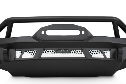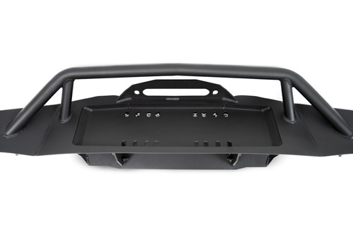 Our MTO Series Winch Front Bumper for the Jeep Wrangler & Gladiator features a full-width design for maximum protection on the trail. Its aggressive design and flared wings look great with the JK factory fenders and the JL/JT Rubicon and Non-Rubicon fenders. The recessed winch tray accepts multiple size winches, and sits protected behind a tubular bull bar. Additional recovery options are provided by the 1-inch D-ring mounts that take ?-inch shackle pins. Sitting behind paintable aluminum accent panels is a mount that can take a DV8 Elite 20? single row light bar, Baja Designs S8 20?, or Rigid SR 20? LED light bars. On each wing of the bumper is a mount for a 3-inch light pod. The bumper is finished in a micro-texture black powder coat, and features a fully bolt-on installation.