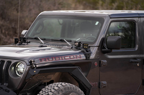 These light mount brackets install direct to factory mounting locations on the cowl of your Jeep maintaining a low-profile position. Up to two 3-inch LED pod lights can be installed on each side, providing additional lighting on the trail in low-light conditions. The brackets are constructed with 3mm steel, and finished in a micro-texture black powder coat.