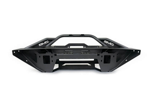 The Bronco FS-15 Series is a 2021-2022 Ford Bronco Winch-Ready Mid-Width Front Bumper, with the option to include modular wings to make it a full-width bumper. The light mount tabs on the bull bar can be oriented to mount a 13-inch light bar above or below the bull bar. Up to a 12,000 lb. winch can be mounted on top of the bumper. At the center of the bumper, either a 20-inch dual row light bar or 6 pod lights can be mounted. Two recovery mounts that take 3/4 in D-rings provide additional recovery options. This bumper is compatible with the OEM plastic & metal skid plates, and also retains the factory parking sensors.