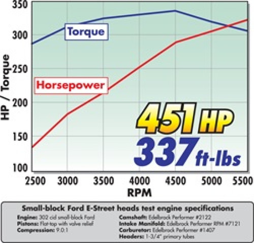 The Edelbrock #5025 E-Street cylinder heads are designed for Ford 289-351 W V8 applications. The Edelbrock E-Street cylinder heads offer American made quality and affordable performance. E-Street cylinder heads feature as-cast ports and are designed for entry-level street performance applications operating in the idle-to-5500 rpm range. The modern combustion chamber designs improve the combustion process and larger than stock intake and exhaust ports move more air through your engine for improve efficiency. For use on pre-pollution controlled vehicles only.
