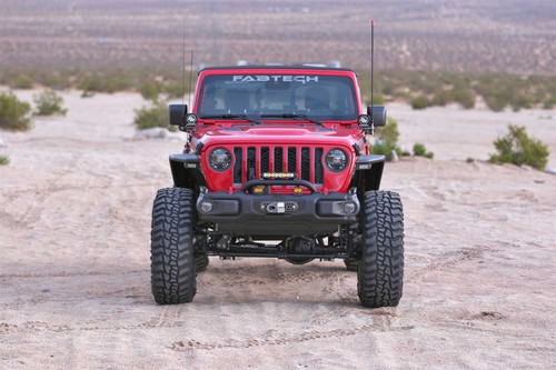 Fabtech's Crawler long arm Gladiator lift kit is built to meet the most experienced driver's expectations without having a questionably fabricated suspension. If you are in the market for a system that will work properly right out of the box and does not require continued fabrication and constant maintenance, look no further. A key part of the Crawler kit is the Link Arm geometry and ground clearance. The location of the of the link arms is critical in providing superior handling throughout the travel range. Fabtech has found the Gladiator's sweet spot geometry for the link arms that provide a superior driving long arm system compared to all others on the market. Front link arms are mounted to a full width crossmember that spans frame rail to frame rail. This crossmember is key in not only in mounting the Links arms at the correct geometry but it adds critical strength to the Gladiator frame for hard offroad use. Adjustable rear links utilize the factory frame and axle brackets for an easy installation. The Fabtech lower Link Arms are massive and built of 2in OD .313 thick wall tubing that is guaranteed not to bend. Upper and lower Link Arms includes the Fabtech's legendary 5 Ton joints that come with lifetime guarantee of never wearing out. They are superior for offroad use with a smooth quiet operation on the street. This high quality Long Arm Gladiator lift kit will provide exceptional offroad performance with good highway manners for the discerning Jeep enthusiast. Each Fabtech component has been designed with specific features and benefits that create this quality suspension system. What's In The System: Front Upper and Lower Link Arms. Rear Upper and Lower Link Arms. Front Link Arm Crossmember. Heavy Duty Flipped Draglink. Front and Rear Track Bar Brackets. Front and Rear Corner Specific Dual Rate Coil Springs. Front and Rear Sway Bar Links. Front Shock Mount Bracket. Front and Rear Bump Stop Extensions. LINK ARMS: Heavy duty is the only way to describe these