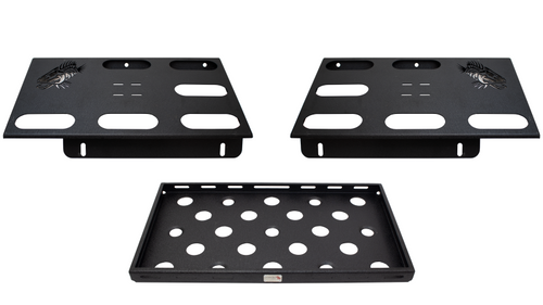 Enhance your Ford F150 or Toyota Tundra's utility with the Fishbone Offroad Bed Storage Rack. Crafted from durable steel, black powder-coated, and easy to install onto the bed trail rail. Usable rack space measures 34-1/4in. x 19-3/16in., with the rack positioned 21.5in. from the floor to the bottom. Upgrade your truck's storage capacity with this practical and stylish addition.