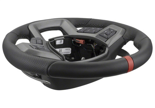Black leather construction with perforated sides, grey stitching and a red leather sightline. The Raptor steering wheel has a more aggressive look and a defined feel then F-150 steering wheels. Steering wheel comes equipped with a wire harness, trim bezel and Raptor steering wheel control controls. Installation into a non-Raptor F-150 and Raptors equipped with the Technology Package (68R) requires the steering wheel controls to be swapped from the original steering wheel. Kit includes a 2017 Raptor red sightline heated steering wheel and all needed installation hardware.