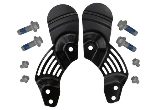 Ford Racing brake cooling shields protect your Mustang's tie rod ends from heat, while improving heat dissipation from your front brakes. They are perfect for high performance track use. Replace your factory dust shield with Ford Racing brake cooling shields.