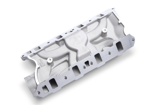 289/302 Dual-Plane Intake Manifold for use with 8.206- in. deck height block and inline valve heads. 4.375- inches at the front of the carburetor pad and 5.250- inches at the rear. 1500-6000 rpm range, dual plane intake and excellent fuel distribution. For use with any mid-rpm small block application, great for street cars and mild race engines. Does not fit Z or the GT-40 X heads.