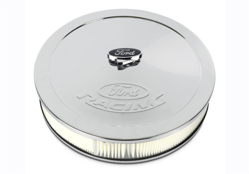 Add a Ford RACING, MUSTANG or COBRA Air Cleaner to your engine for that customized look. These 13 in. diameter air cleaners fit both 2 barrel and 4 barrel carburetors and include a high-performance filter element. Ford logo air cleaner center nut is also included.