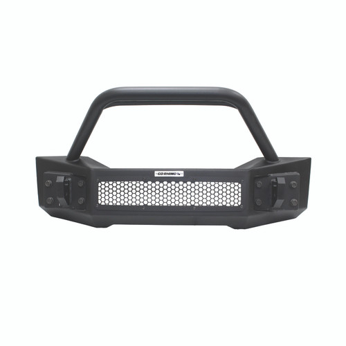 Part of Go Rhino's famous Jeep Bumper family of products. Rockline Winch Ready Front Stubby Bumper for Jeep JK, JL and JT with signature hex mesh LED protective cover for use with industry standard 20" double row LED bar or up to 4 standard 3" cube LEDs and a fully welded override light mount bar. Rockline Bumpers come with a Limited Lifetime warranty on materials and construction and a 5 year warranty on the Textured Black Finish.