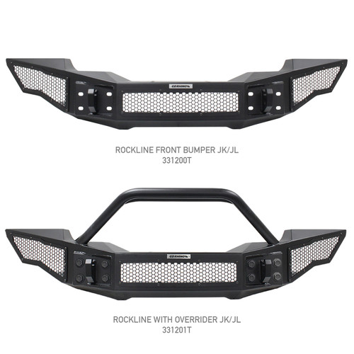 Part of Go Rhino's famous Jeep Bumper family of products. Wrangler JK, JL and JT Rockline Winch Ready Front Full Width Bumper w/ signature hex mesh LED protective cover for use with either an industry standard 20" double row LED bar or up to 4" standard cube LED's. Includes patented Rhino Hook D-Ring mounts. Rockline Bumpers come with a Limited Lifetime warranty on materials and construction and a 5 year warranty on the Textured Black Finish.