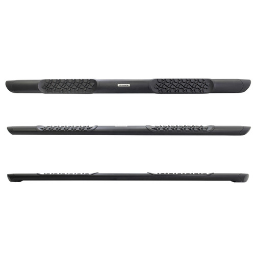 Go Rhino's V3 side steps bring on a sleek, aerodynamic look, the convenience of corrosion-resistant aluminum and strength based on quality engineering and design. Finished with a textured black powder coating, the 5†wide ellipse-shaped boards feature anti-slip polymer step pads with a multi-dimensional tire tread pattern so rain, snow and slush easily drain off and reduce the risk of slipping while stepping up into your vehicle. Each V3 board is fortified with a dual core full length extrusion allowing the board to support up to 300 lbs per step pad (600 lbs per side for 4-door vehicles). Hardware and brackets are included and installation on most vehicles will not require drilling. The V3 Side Steps come with a Limited Lifetime warranty on materials and construction and a 5 year warranty on the Textured Black Finish.