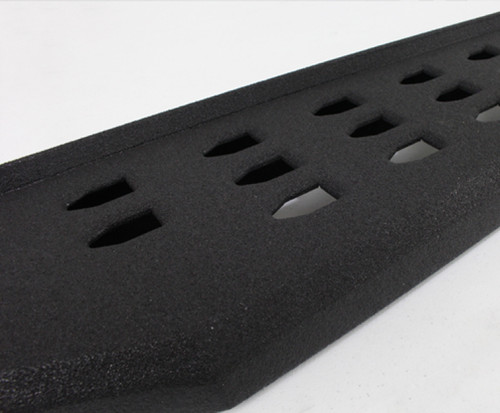 RB20 Running Boards offer off road styling while also helping to protect the paint from flying stones and gravel while providing a wide, full-length step platform for easy entry to the front or rear doors. 2017 Ford Raptor-style, built from 16-gauge zinc coated steel and coated with a durable black finish for corrosion, impact and abrasion resistance.