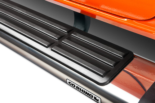 The 6" OE Xtreme Side Steps gives your truck the classic OE oval running board look without the factory prices. They feature Go Rhino's signature SuperGrip™ rubber step pads, which maintain a non-slip surface even when wet. (Replacement bars only - mounting brackets not included). Limited Lifetime warranty on materials, construction and Finish.