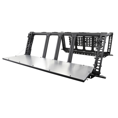 The XRS Rhino Accessory Gear Table for Full-Size Trucks was created to mount a variety of standard trail accessories from major manufacturers (Daystar, Cam Cans, Tread Pro, Roto Pax, MOLLE/PALS, Max Trax or Jerry Cans) on to Go Rhino's 4-CORE system. While it was specifically designed to bolt on to the 10-inch spaced 4-CORE cross bars of the SRM Series Roof Racks, CEROS Roof Racks or XRS Xtreme Rack, the panel is drillable and can be custom hacked to mount on any flat surface. XRS Gear Plate comes with a Limited Lifetime warranty on materials and construction and a 5 year warranty on the the textured black finish.