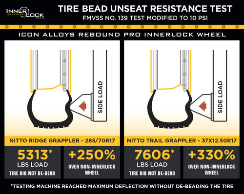 Staying true to the ICON Alloys approach, the Recon PRO has been engineered to maximize caliper clearance and optimize wheel position for un-hindered suspension travel and steering function. Backspace and wheel offset dimensions have been strategically developed to reduce scrub radius, improving all-around handling and ride quality. The Recon PRO has also been strength tested to yield a 3,200lb load rating - making it one of the strongest wheel options on the market. With build features such as these, it's clear that a set of ICON Alloys wheels is the perfect complement to any truck, Jeep, or SUV.