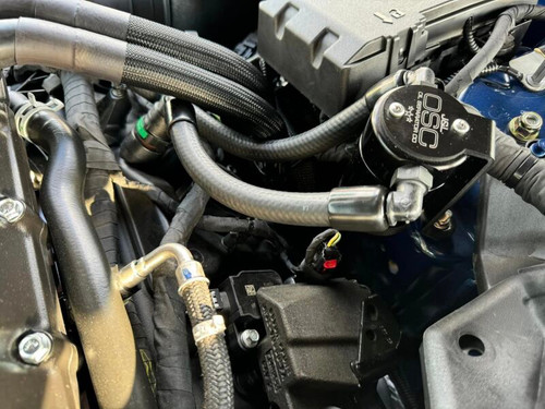 During the process of venting crankcase pressure back through your intake track, large amounts of oil, in the form of vapors can gather/accumulate in your intake tube, intake manifold runners and even dilute your gas, lowering its octane level. This happens on all engines and is even worse with forced inducted vehicles (supercharged and turbocharged) as crankcase pressures are increased. To combat this, we have developed an oil separator of our own design. Milled from solid billet aluminum this is a rock-solid piece. It has a knurled tank base for easy removal to drain the spent oil and an O-ring seal to prevent any leaks. Filtering consists of a fine mesh stainless steel screen that traps fine oil vapors and releases them once heavy enough to fall. They then pass through a 1/2" thick 1/16th" aluminum honeycomb filter where they grow every larger and then fall into the bottom. By the time the oil gets through the filter it's too heavy to be passed on into the intake. The tank holds 3 oz of fluid, while that may not sound like a lot, you shouldn’t see that much oil in your PCV system. Drain it every 2000-3000 miles and you will never come close to filling it.