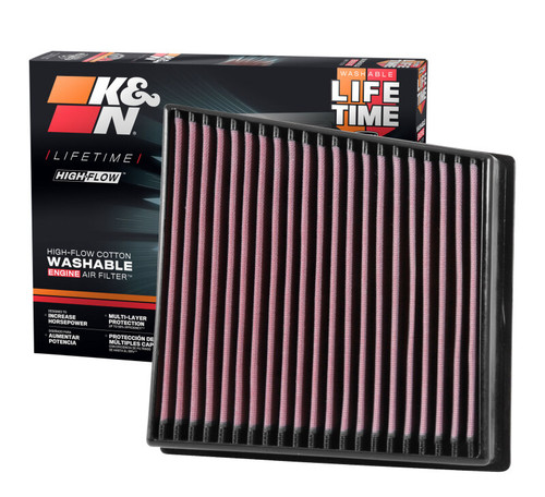 K&N washable, reusable High-Flow Air Filters feature a state-of-the-art design of layered, oiled cotton media engineered to improve airflow and capture contaminants, and are designed to provide an increase in horsepower. Each performance air filter is reusable, engineered to last for the entire lifespan of your vehicle, and backed by K&N's 10-Year/Million Mile Limited Warranty. K&N drop-in replacement filters are designed to install easily into your factory air box. Upgrade today and start enjoying superior airflow and superior performance from K&N's most popular product!