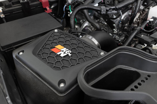 This K&N cold air intake system is engineered for your Toyota Tacoma L4-2.4L Turbo F/L. A high-density polyethylene (HDPE) rotationally molded tube helps increase the volume of airflow to your engine and provides a guaranteed increase of 15.6 horsepower and 20.7 torque with no tune required. This intake system is paired with a washable, reusable High-Flow LIFETIME Air Filter featuring oiled cotton filter media. The oversized, conical design allows you to go up to 100,000 miles between filter services under normal highway driving conditions. A custom designed enclosed air box helps protect intake air from the high temperature of your engine bay, and the entire system can typically be installed in less than 60 minutes.