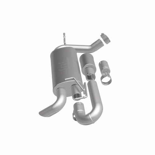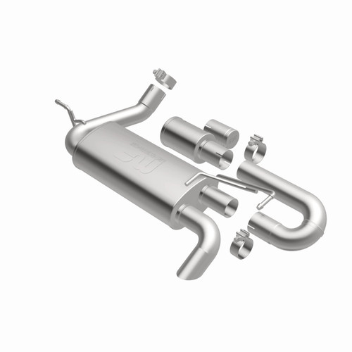The MagnaFlow Jeep Wrangler JK Overland Series Axle-Back Performance Exhaust System #19668 is engineered for off-road function and built to explore further. This Jeep Wrangler exhaust system is designed for the 2007-2018 Jeep Wrangler equipped with the V6 3.6L or 3.8L engine option. The high clearance exhaust design of this kit is designed to keep clear of any challenging terrain or obstacles you may come across. #19668 2.5” diameter mandrel bent main piping passes through an 18” straight-through oval muffler and No Drone Technology (NDT) tuned chamber before exiting in a high-clearance tucked tailpipe to the rear of the passenger side. MagnaFlow NDT utilizes passive quarter-wave noise cancellation to minimize the unwanted droning noises that can otherwise occur at highway cruising speeds. The entire Jeep exhaust kit can be tailored to your preferred exhaust tone by changing out which module is attached to the integrated muffler’s accessory port. The included pipe cap, J-pipe and NDT modules can be combined in various ways to mitigate a wide range of droning frequencies, so which exhaust sound profile you choose to go with is up to your driving style. Looking to minimize overall drone? Simply connect the NDT module. Prefer a more traditional rendition of that famous MagnaFlow exhaust tone? All you need to do is cover the accessory port with the included pipe cap. Exhaust kit #19668 utilizes a direct-fit, easy to install design that replaces your OEM exhaust system from near the rear axle on back. This Jeep Wrangler JK axle-back performance exhaust system is made of durable, corrosion resistant stainless steel and produced using advanced CNC precision robotic manufacturing techniques, all backed by MagnaFlow’s limited lifetime warranty.