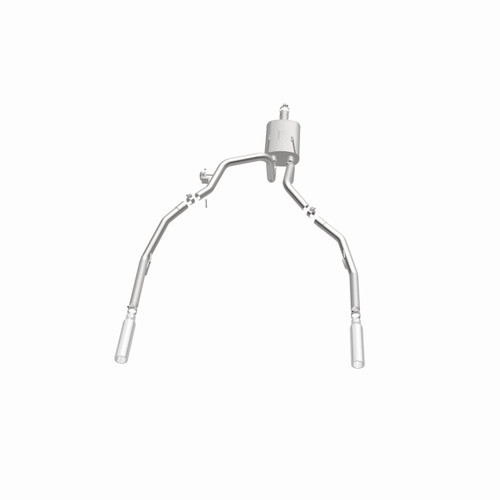 The MagnaFlow Street Series Cat-Back Performance Exhaust System 15249 brings out the personality of your Truck with our signature resonant, powerful engine tone and dyno-proven performance. Thanks to its fast-flowing, mandrel bent 3in. main piping and 1 Straight-Through mufflers ending in a Dual Split Rear exit with 3.5in. Polished Welded-On Single Wall Angle Cut Rolled Edge tips, this Truck exhaust kit has the performance chops to match its sporty sound and appearance. Upgrade your ride to the next level with an exhaust that has the pipes to put other Truck's to shame. With this system your vehicle will be producing Aggressive exterior and Moderate interior sound levels while leaving other cars and trucks feeling envious at every stoplight. Exhaust kit 15249 features a cat-back layout that replaces your ride's stock exhaust components from near the catalytic converter on back. Extensive 3D scanning during development has resulted in a direct-fit design that you can easily install yourself. 15249 is produced using CNC precision robotic manufacturing techniques and is backed by MagnaFlow's 1-year limited finish warranty and limited lifetime construction warranty.