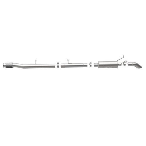 The MagnaFlow Off-Road Pro Series Cat-Back Performance Exhaust System 17146 brings additional off-roading prowess and our deep signature exhaust note to your Truck with a weight-optimized, dyno-tested, corrosion resistant and durable stainless steel design engineered to closely hug the undercarriage for improved ground clearance. Exhaust kit 17146 is engineered to produce Very Aggressive exterior and Aggressive interior sound levels. Extensive 3D scanning was used during the development of this Truck exhaust system to create a direct-fit design, enabling a do-it-yourself installation process. 17146's emissions-legal cat-back design replaces all your truck's exhaust components from the catalytic converter on back with its 3in. diameter mandrel bent main piping that passes through 1 Straight-Through mufflers before ending in a turndown before rear axle exit with 3in. Satin Clamp-On Single Wall Turndown Cut Edge tips. Exhaust system 17146 is produced using advanced CNC precision robotic manufacturing techniques and backed by MagnaFlow's limited lifetime warranty.