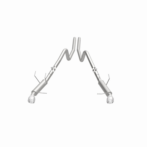 The MagnaFlow 2014 Ford Mustang Competition Series Cat-Back Performance Exhaust System 15245 brings an aggressive, attention-grabbing edge to the deep resonant exhaust note we're so well known for. This exhaust kit is designed to enhance your 3.7L 2014-2014 Ford Mustang with dyno-proven performance made possible thanks to fast-flowing mandrel bent 2.5in. main piping and 2 Straight-Through mufflers ending in a Dual Split Rear exit with 4.5in. Polished Welded-On Double Wall Angle Cut Folded Edge tips featuring a sporty finish. The exhaust system's cat-back layout replaces your ride's exhaust system from near the catalytic converter on back. Exhaust system 15245 is engineered to make your vehicle's engine produce Aggressive exterior and Moderate interior sound levels, befitting its competition-oriented design. 15245's direct-fit design makes installation a breeze thanks to the use of advanced 3D scanning techniques. This performance exhaust system is made of 100% durable and corrosion-resistant stainless steel and produced using CNC precision robotic manufacturing, all backed by MagnaFlow's limited lifetime warranty. Please check to ensure compliance with local noise regulations.