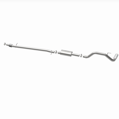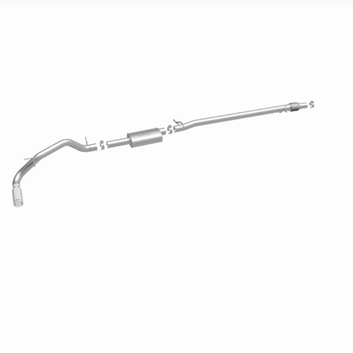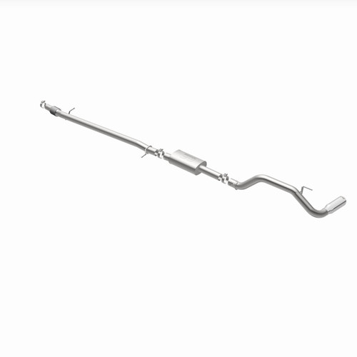 The MagnaFlow 2019-2023 Ford Ranger Street Series Cat-Back Performance Exhaust System 19451 brings out the personality of your 2.3L 2019-2023 Ford Ranger with our signature resonant, powerful engine tone and dyno-proven performance. Thanks to its fast-flowing, mandrel bent 3in. main piping and 1 Straight-Through mufflers ending in a Single Passenger Side Rear exit with 4in. Polished Welded-On Double Wall Angle Cut Rolled Edge tips, this Ford Ranger exhaust kit has the performance chops to match its sporty sound and appearance. Upgrade your ride to the next level with an exhaust that has the pipes to put other Ford Ranger's to shame. With this system your vehicle will be producing Moderate exterior and Mild interior sound levels while leaving other cars and trucks feeling envious at every stoplight. Exhaust kit 19451 features a cat-back layout that replaces your ride's stock exhaust components from near the catalytic converter on back. Extensive 3D scanning during development has resulted in a direct-fit design that you can easily install yourself. 19451 is produced using CNC precision robotic manufacturing techniques and is backed by MagnaFlow's 1-year limited finish warranty and limited lifetime construction warranty.