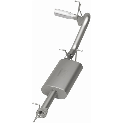 The MagnaFlow 2019-2024 Ram 1500 Street Series Cat-Back Performance Exhaust System 19461 brings out the personality of your 3.6L 2019-2023 Ram 1500 with our signature resonant, powerful engine tone and dyno-proven performance. Thanks to its fast-flowing, mandrel bent 3in. main piping and 1 Straight-Through mufflers ending in a Single Passenger Side Rear exit with 4in. Polished Welded-On Double Wall Angle Cut Rolled Edge tips, this Ram 1500 exhaust kit has the performance chops to match its sporty sound and appearance. Upgrade your ride to the next level with an exhaust that has the pipes to put other Ram 1500's to shame. With this system your vehicle will be producing Moderate exterior and Mild interior sound levels while leaving other cars and trucks feeling envious at every stoplight. Exhaust kit 19461 features a cat-back layout that replaces your ride's stock exhaust components from near the catalytic converter on back. Extensive 3D scanning during development has resulted in a direct-fit design that you can easily install yourself. 19461 is produced using CNC precision robotic manufacturing techniques and is backed by MagnaFlow's 1-year limited finish warranty and limited lifetime construction warranty.
