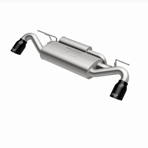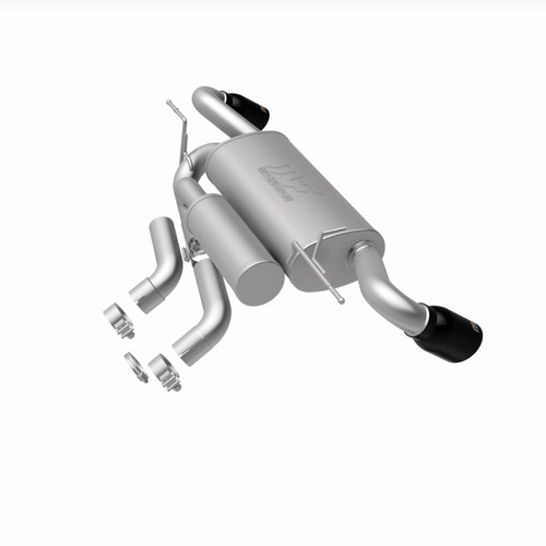 The MagnaFlow Ford Bronco Sport Street Series Axle-Back Performance Exhaust System #19553 brings MagnaFlow’s deep signature sound and dyno-proven performance to your 2021-2025 Ford Bronco Sport. Exhaust kit #19553 is compatible with the 1.5L and 2.0L EcoBoost engine options and utilizes MagnaFlow’s No Drone Technology (NDT) to keep unwanted noises in check at lower engine speeds. #19553 is engineered to facilitate moderate exterior sound levels while keeping exhaust volume at a mild level in your SUV’s interior. This 2021-2025 Ford Bronco Sport exhaust system features mandrel bent, 2.5” diameter tubing that flows through an NDT resonator and a straight-through muffler before terminating in a dual exit layout with 4” diameter black chrome finished tips. The entire exhaust kit was created using CNC precision robotic manufacturing and durable 100% stainless steel construction. Exhaust system #19553 is covered by MagnaFlow’s limited lifetime warranty.