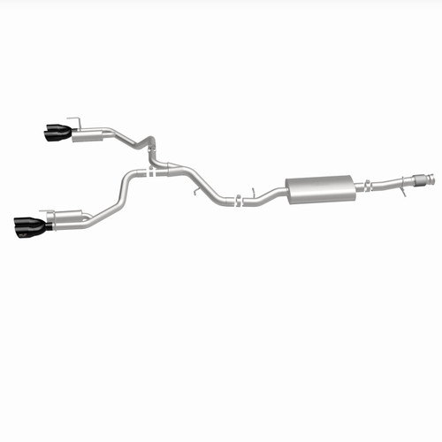 The MagnaFlow Chevrolet Tahoe/GMC Yukon Street Series Cat-Back Performance Exhaust System #19580 drastically improves your 2021-2024 Chevrolet Tahoe High Country or GMC Yukon Denali by enabling MagnaFlow’s deep signature sound and dyno proven performance to work their magic in improving your driving experience while keeping interior noise in check. Noise control is possible thanks to MagnaFlow’s No Drone Technology (NDT), which uses quarter-wave passive noise cancellation tuned to the specific droning frequency of your Chevrolet Tahoe High Country or GMC Yukon Denali in order to eliminate exhaust drone. NDT was designed to take the most popular bolt-on modifications into consideration. This cat-back exhaust kit features 3” diameter piping, straight-through muffler, quarter-wave resonators, quad split rear exit and black chrome-finished 4” tips for an extra sporty appearance. The exhaust system is made entirely of stainless steel and was designed from the beginning with weight and ground clearance in mind to improve durability and maintain your 2021-2024 Chevrolet Tahoe/GMC Yukon’s utility. CNC precision robotic manufacturing and mandrel bent tubing allow for hassle-free bolt-on installation. MagnaFlow stands by the reliability of their products with a limited lifetime warranty.