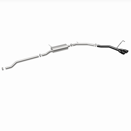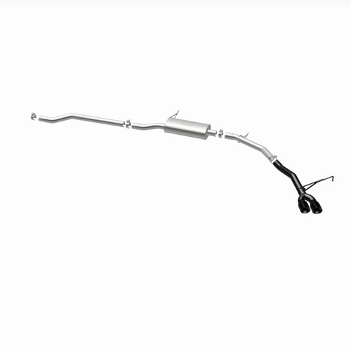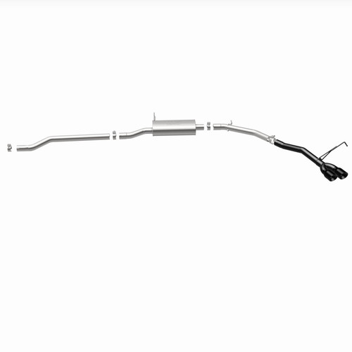 The MagnaFlow 2022-2024 Ford Maverick Street Series Cat-Back Performance Exhaust System 19597 brings out the personality of your 2.0L 2022-2024 Ford Maverick with our signature resonant, powerful engine tone and dyno-proven performance. Thanks to its fast-flowing, mandrel bent 2.5in. main piping and 1 Straight-Through mufflers ending in a Dual Same Side Behind Driver Rear Tire exit with 3.5in. Black Coated Welded-On Double Wall Angle Cut Folded Edge tips, this Ford Maverick exhaust kit has the performance chops to match its sporty sound and appearance. Upgrade your ride to the next level with an exhaust that has the pipes to put other Ford Maverick's to shame. With this system your vehicle will be producing Moderate exterior and Mild interior sound levels while leaving other cars and trucks feeling envious at every stoplight. Exhaust kit 19597 features a cat-back layout that replaces your ride's stock exhaust components from near the catalytic converter on back. Extensive 3D scanning during development has resulted in a direct-fit design that you can easily install yourself. 19597 is produced using CNC precision robotic manufacturing techniques and is backed by MagnaFlow's 1-year limited finish warranty and limited lifetime construction warranty.