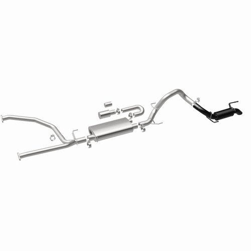 The MagnaFlow Toyota Sequoia Overland Series Cat-Back Performance Exhaust System #19625 offers the improved off-road capabilities, higher ground clearance, dyno-proven performance and signature MagnaFlow sound necessary to turn your 2023-2024 Toyota Sequoia into the ultimate overlanding vehicle. #19625’s direct-fit design is easy to install and replaces your SUV’s stock exhaust components from near the catalytic converter on back. This Toyota Sequoia exhaust system features 3” mandrel bent main piping that passes through a 22” oval bodied muffler and 11” round bodied muffler in addition to an NDT (No Drone Technology) reflection chamber before ending in a high clearance, tucked black-coated tailpipe to the rear of the driver’s side. The integration of MagnaFlow’s NDT technology means that droning noises at highway cruising speeds are kept to a minimum. One of the system’s mufflers features an accessory port, where various included modules can be attached to further augment your rig’s engine sound. An additional NDT resonator module can be attached for further droning reduction in various frequency ranges, or the port can be covered with the included pipe cap for a more traditional MagnaFlow exhaust sound. Together with the included J-pipe module, these attachments can be combined in various configurations to tune out a variety of different droning frequencies. The high clearance nature of the design and tucked exit of this system means both improved ground clearance and departure angles for superior off-road performance. This performance exhaust kit is made of durable, corrosion resistant stainless steel and produced using advanced CNC precision robotic manufacturing techniques, all backed by MagnaFlow’s limited lifetime warranty.