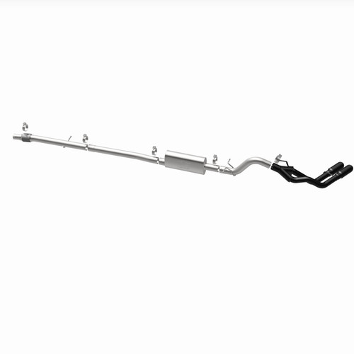The MagnaFlow 2024-2025 Ford Ranger SPEQ Series Cat-Back Performance Exhaust System 19635 brings out the personality of your truck with our signature resonant, powerful engine tone and dyno-proven performance. MagnaFlow #19635 3” diameter mandrel bent main piping passes through an all-new specifically tuned performance oval muffler before exiting in a dual same side behind passenger rear tire exit with 3.5” black coated welded-on double wall angle cut folded edge tips. This MagnaFlow truck exhaust kit is the perfect equalizer between sound and performance. Elevate your truck to the next level with an exhaust that has the pipes to put other trucks to shame. With this exhaust system your truck will be producing moderate exterior and mild interior sound levels for a smooth and comfortable driving experience. Exhaust kit 19635 features a cat-back layout that replaces your truck’s stock exhaust components from near the catalytic converter on back. Extensive 3D scanning during development has resulted in a direct-fit exhaust design that you can easily install yourself. 19635 is produced using CNC precision robotic manufacturing techniques and is backed by MagnaFlow's 1-year limited finish warranty and limited lifetime construction warranty.