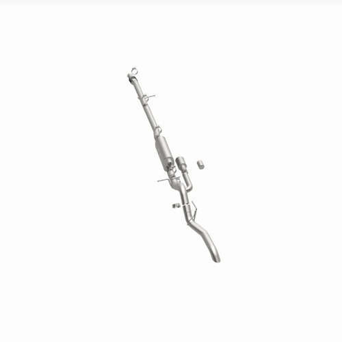 The MagnaFlow Ford Ranger Overland Series Cat-Back Performance Exhaust System #19636 is engineered for off-road function and built to explore further. This Ford Ranger exhaust system is designed for the 2024-2025 Ford Ranger equipped with the I4-2.3L engine option. The high clearance exhaust design of this kit is designed to keep your truck clear of any challenging terrain or obstacles you may come across. #19636 3” diameter mandrel bent main piping passes through an 18” straight-through oval muffler and No Drone Technology (NDT) tuned chamber before exiting in a high-clearance single passenger side rear exit style. MagnaFlow NDT utilizes passive quarter-wave noise cancellation to minimize the unwanted droning noises that can otherwise occur at highway cruising speeds. This truck exhaust kit can be tailored to your preferred exhaust tone by installing various exhaust modules that are integrated with the muffler’s accessory port. The included pipe cap, J-pipe and NDT modules can be combined in different configurations to mitigate a wide range of droning frequencies. Looking for a smoother, quieter ride on the trails? Simply connect the NDT module. Prefer a more aggressive signature sound? Install the pipe cap to cover the muffler accessory port. Exhaust kit #19636 utilizes a direct-fit, easy to install design that replaces your OEM exhaust system from the catalytic converter on back. This Ford Ranger cat-back performance exhaust system is made of durable, corrosion resistant stainless steel and produced using advanced CNC precision robotic manufacturing techniques, all backed by MagnaFlow’s limited lifetime warranty.
