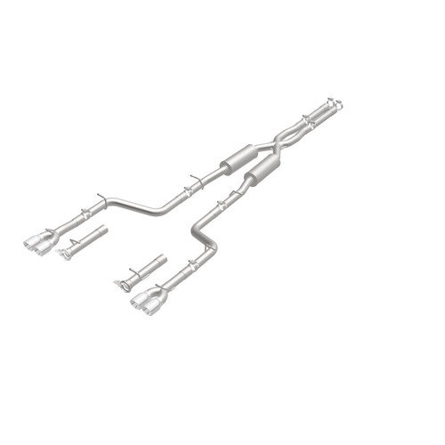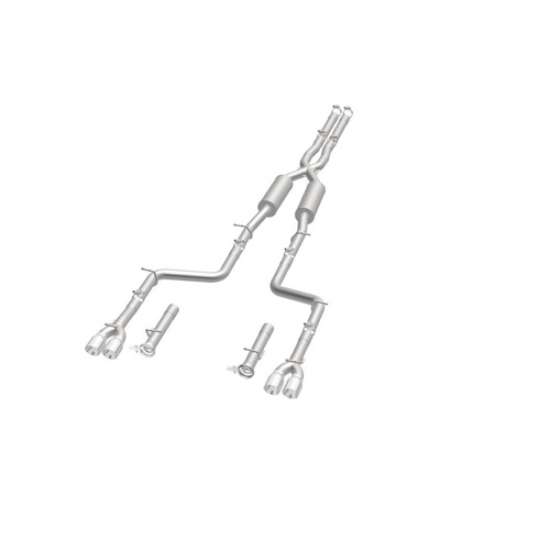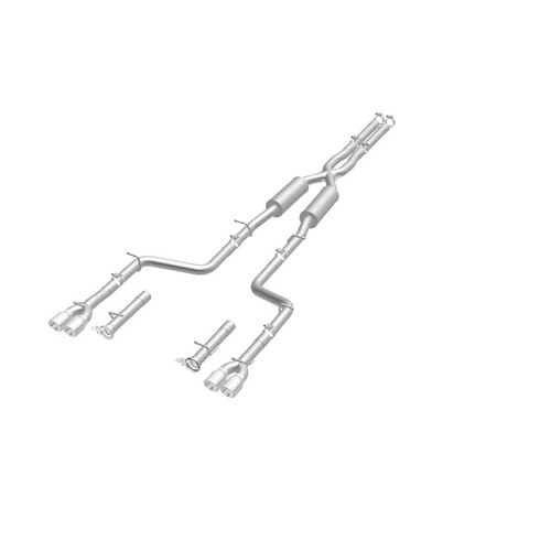 The MagnaFlow 2015-2016 Dodge Challenger Competition Series Cat-Back Performance Exhaust System 19209 brings an aggressive, attention-grabbing edge to the deep resonant exhaust note we're so well known for. This exhaust kit is designed to enhance your 5.7L 2015-2016 Dodge Challenger with dyno-proven performance made possible thanks to fast-flowing mandrel bent 2.5in. main piping and 2 Straight-Through mufflers ending in a Quad Split Rear exit with 3.5in. Polished Welded-On Double Wall Angle Cut Folded Edge tips featuring a sporty finish. The exhaust system's cat-back layout replaces your ride's exhaust system from near the catalytic converter on back. Exhaust system 19209 is engineered to make your vehicle's engine produce Aggressive exterior and Moderate interior sound levels, befitting its competition-oriented design. 19209's direct-fit design makes installation a breeze thanks to the use of advanced 3D scanning techniques. This performance exhaust system is made of 100% durable and corrosion-resistant stainless steel and produced using CNC precision robotic manufacturing, all backed by MagnaFlow's limited lifetime warranty. Please check to ensure compliance with local noise regulations.