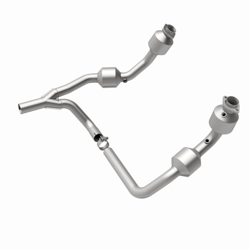 Keep the check engine light off with MagnaFlow OEM Grade Federal/EPA Compliant Direct-Fit Catalytic Converter 49689. With features including free-flowing mandrel-bent tubing and highly corrosion resistant stainless steel construction, easily install this spun body converter yourself using the proper tools, no cutting or welding required. MagnaFlow's state-of-the-art metrology department uses the latest 3D scanning systems during research and development, so you can be confident that your new part will fit and function like the original equipment. By replicating the OE spun body design, the single laser fusion weld greatly reduces the possibility of a leak, and our compact, low-mass design also allows for greater thermal efficiency. This direct-fit catalytic converter is designed specifically for the 2007-2009 Jeep Wrangler and interchanges with OE parts 5205 9930AH and 5205 9930AF, among others. Hardware is included to eliminate the hassle of working with corroded factory parts. This replacement part is designed to meet or exceed Federal emissions requirements set forth by the EPA, complying with legal standards for OBDII Federally registered vehicles with California or Federal/EPA Emission systems.