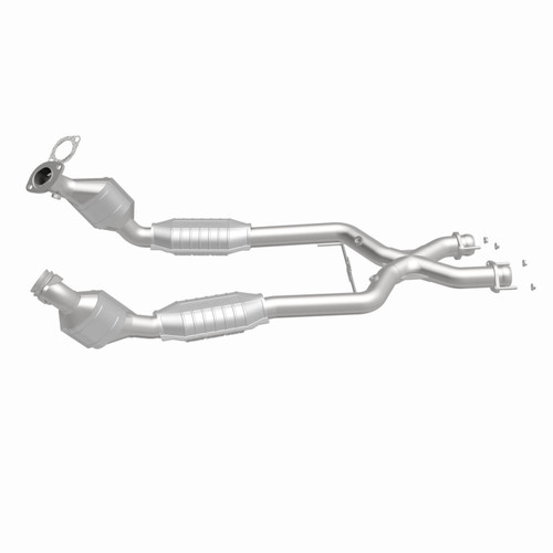 Keep the check engine light off with MagnaFlow HM Grade Federal/EPA Compliant Direct-Fit Catalytic Converter 23163. With features including free-flowing mandrel-bent tubing and highly corrosion resistant stainless steel construction, easily install this converter yourself using the proper tools, no cutting or welding required. MagnaFlow's state-of-the-art metrology department uses the latest 3D scanning systems during research and development, so you can be confident that your new part will fit and function like the original equipment. By replicating the OE design, the single laser fusion weld greatly reduces the possibility of a leak, and our compact, low-mass design also allows for greater thermal efficiency. This Direct-Fit Catalytic Converter is designed to fit the 1996-1998 Ford Mustang SVT Cobra 4.6L. MagnaFlow 23163 includes (4) Nuts, (1) Flange Gasket and interchanges with OE parts F6ZZ-5F250-ML. This replacement part is designed to meet or exceed Federal emissions requirements set forth by the EPA, complying with legal standards for OBDII Federally registered vehicles with Federal/EPA Emission systems.