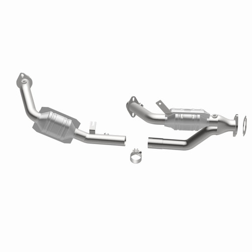 Keep the check engine light off with MagnaFlow HM Grade Federal/EPA Compliant Direct-Fit Catalytic Converter 23534. With features including free-flowing mandrel-bent tubing and highly corrosion resistant stainless steel construction, easily install this converter yourself using the proper tools, no cutting or welding required. MagnaFlow's state-of-the-art metrology department uses the latest 3D scanning systems during research and development, so you can be confident that your new part will fit and function like the original equipment. By replicating the OE design, the single laser fusion weld greatly reduces the possibility of a leak, and our compact, low-mass design also allows for greater thermal efficiency. This Direct-Fit Catalytic Converter is designed to fit the 1996-1999 Ford Taurus 3.0L & 1996-1999 Mercury Sable 3.0L. MagnaFlow 23534 includes (1) Torca Clamp, (1) Flange Gasket and interchanges with OE parts F6DZ-5F250-JL, F7DZ-5F250-SA. This replacement part is designed to meet or exceed Federal emissions requirements set forth by the EPA, complying with legal standards for OBDII Federally registered vehicles with Federal/EPA Emission systems.