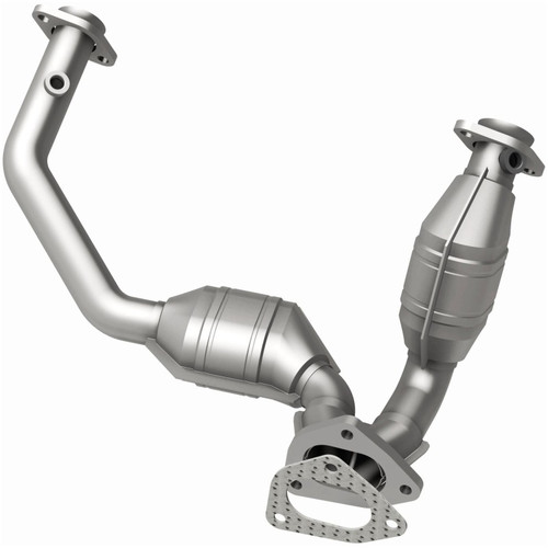Keep the check engine light off with MagnaFlow HM Grade Federal/EPA Compliant Direct-Fit Catalytic Converter 93110. With features including free-flowing mandrel-bent tubing and highly corrosion resistant stainless steel construction, easily install this converter yourself using the proper tools, no cutting or welding required. MagnaFlow's state-of-the-art metrology department uses the latest 3D scanning systems during research and development, so you can be confident that your new part will fit and function like the original equipment. By replicating the OE design, the single laser fusion weld greatly reduces the possibility of a leak, and our compact, low-mass design also allows for greater thermal efficiency. MagnaFlow 93110 includes (1) Flange Gasket and interchanges with OE parts 1L5Z 5E212-CA, F87Z 5F250-CA, ZZP2-40-050, ZZP3-40-050, ZZR2-40-050, ZZR3-40-050. This replacement part is designed to meet or exceed Federal emissions requirements set forth by the EPA, complying with legal standards for OBDII Federally registered vehicles with Federal/EPA Emission systems.