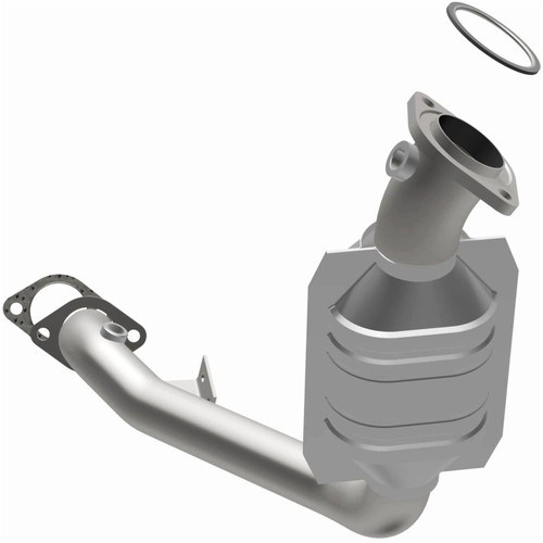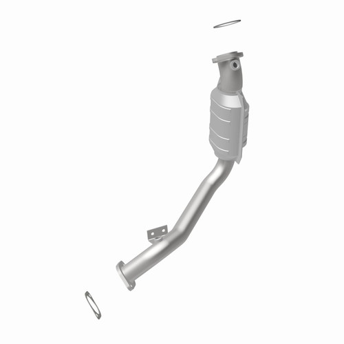 Keep the check engine light off with MagnaFlow HM Grade Federal/EPA Compliant Direct-Fit Catalytic Converter 23396. With features including free-flowing mandrel-bent tubing and highly corrosion resistant stainless steel construction, easily install this converter yourself using the proper tools, no cutting or welding required. MagnaFlow's state-of-the-art metrology department uses the latest 3D scanning systems during research and development, so you can be confident that your new part will fit and function like the original equipment. By replicating the OE design, the single laser fusion weld greatly reduces the possibility of a leak, and our compact, low-mass design also allows for greater thermal efficiency. MagnaFlow 23396 includes (1) Flange Gasket, (1) Flat Ring Gasket and interchanges with OE parts F8CZ-5E212-LC. This replacement part is designed to meet or exceed Federal emissions requirements set forth by the EPA, complying with legal standards for OBDII Federally registered vehicles with Federal/EPA Emission systems.