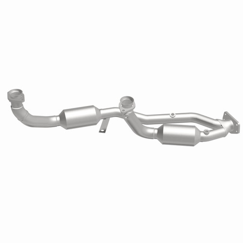 Keep the check engine light off with MagnaFlow HM Grade Federal/EPA Compliant Direct-Fit Catalytic Converter 23542. With features including free-flowing mandrel-bent tubing and highly corrosion resistant stainless steel construction, easily install this converter yourself using the proper tools, no cutting or welding required. MagnaFlow's state-of-the-art metrology department uses the latest 3D scanning systems during research and development, so you can be confident that your new part will fit and function like the original equipment. By replicating the OE design, the single laser fusion weld greatly reduces the possibility of a leak, and our compact, low-mass design also allows for greater thermal efficiency. This Direct-Fit Catalytic Converter is designed to fit the 1999-2000 Ford Windstar 3.8L. MagnaFlow 23542 interchanges with OE parts XF2Z-5F250-AA, XF2Z-5F250-FA. This replacement part is designed to meet or exceed Federal emissions requirements set forth by the EPA, complying with legal standards for OBDII Federally registered vehicles with Federal/EPA Emission systems.