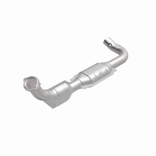 Keep the check engine light off with MagnaFlow HM Grade Federal/EPA Compliant Direct-Fit Catalytic Converter 93396. With features including free-flowing mandrel-bent tubing and highly corrosion resistant stainless steel construction, easily install this converter yourself using the proper tools, no cutting or welding required. MagnaFlow's state-of-the-art metrology department uses the latest 3D scanning systems during research and development, so you can be confident that your new part will fit and function like the original equipment. By replicating the OE design, the single laser fusion weld greatly reduces the possibility of a leak, and our compact, low-mass design also allows for greater thermal efficiency. This Direct-Fit Catalytic Converter is designed to fit the 1999-2000 Ford F-150 5.4L. This replacement part is designed to meet or exceed Federal emissions requirements set forth by the EPA, complying with legal standards for OBDII Federally registered vehicles with Federal/EPA Emission systems.