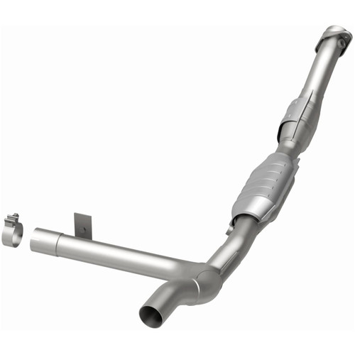 Keep the check engine light off with MagnaFlow HM Grade Federal/EPA Compliant Direct-Fit Catalytic Converter 23082. With features including free-flowing mandrel-bent tubing and highly corrosion resistant stainless steel construction, easily install this converter yourself using the proper tools, no cutting or welding required. MagnaFlow's state-of-the-art metrology department uses the latest 3D scanning systems during research and development, so you can be confident that your new part will fit and function like the original equipment. By replicating the OE design, the single laser fusion weld greatly reduces the possibility of a leak, and our compact, low-mass design also allows for greater thermal efficiency. This Direct-Fit Catalytic Converter is designed to fit the 1999-2000 Ford F-150 4.6L. MagnaFlow 23082 includes (1) Torca Clamp, (1) Bolt. This replacement part is designed to meet or exceed Federal emissions requirements set forth by the EPA, complying with legal standards for OBDII Federally registered vehicles with Federal/EPA Emission systems.