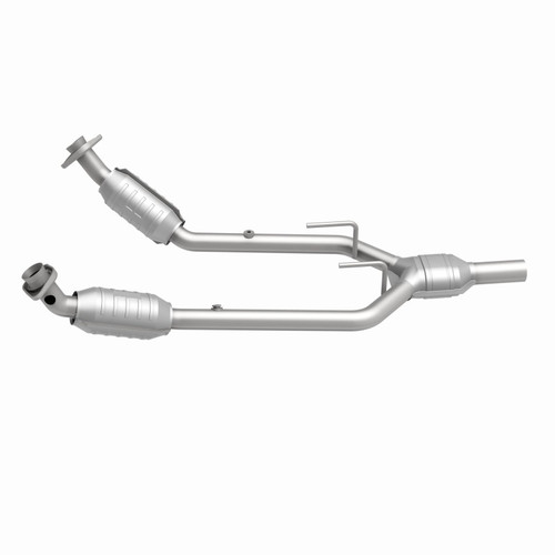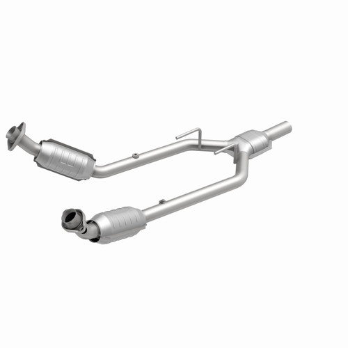 Keep the check engine light off with MagnaFlow HM Grade Federal/EPA Compliant Direct-Fit Catalytic Converter 23325. With features including free-flowing mandrel-bent tubing and highly corrosion resistant stainless steel construction, easily install this spun body converter yourself using the proper tools, no cutting or welding required. MagnaFlow's state-of-the-art metrology department uses the latest 3D scanning systems during research and development, so you can be confident that your new part will fit and function like the original equipment. By replicating the OE spun body design, the single laser fusion weld greatly reduces the possibility of a leak, and our compact, low-mass design also allows for greater thermal efficiency. Designed to fit the 1996-1997 Ford Thunderbird and 1996-1997 Mercury Cougar, this direct-fit catalytic converter also interchanges with OE part F6SZ-5F250-DH. Hardware is included to eliminate the hassle of working with corroded factory parts. This replacement part is designed to meet or exceed Federal emissions requirements set forth by the EPA, complying with legal standards for OBDII Federally registered vehicles with Federal/EPA Emission systems.
