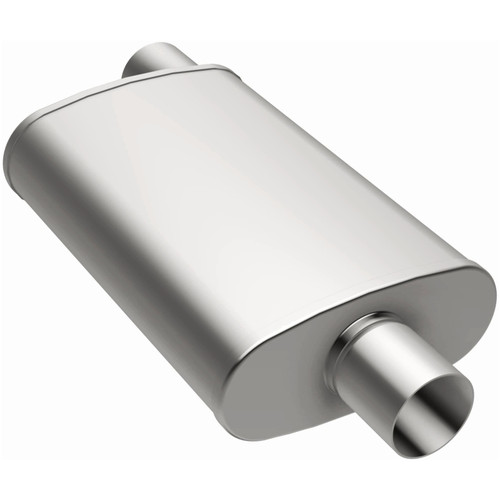 The MagnaFlow 4 X 9in. Oval Straight-Through Performance Exhaust Muffler 11226 is engineered to enhance your ride with a healthy helping of our signature exhaust sound and dyno-proven performance thanks to its free-flowing straight-through perforated stainless steel core wrapped in stainless steel mesh and acoustic fiber fill. The reversible, universal 2.5/2.5in. diameter inlet/outlet Straight-Through layout allows you to install it in whatever orientation and configuration you see fit. However, professional installation is highly recommended. Muffler 11226s weight-optimized 4x9x14in. oval-shaped body features a satin finish that elevates the overall aesthetics of your current exhaust setup. 11226 is made of durable, corrosion resistant stainless steel and produced using cutting-edge CNC precision robotic manufacturing techniques, all backed by MagnaFlow's limited lifetime construction warranty.