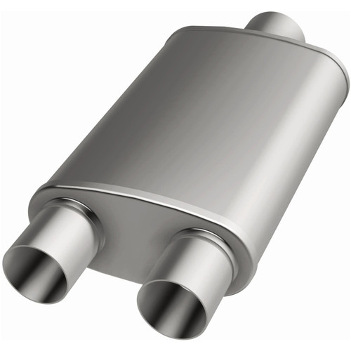 The MagnaFlow 5 X 8in. Oval Straight-Through Performance Exhaust Muffler 12198 is engineered to enhance your ride with a healthy helping of our signature exhaust sound and dyno-proven performance thanks to its free-flowing straight-through perforated stainless steel core wrapped in stainless steel mesh and acoustic fiber fill. The reversible, universal 3/2.5in. diameter inlet/outlet Straight-Through layout allows you to install it in whatever orientation and configuration you see fit. However, professional installation is highly recommended. Muffler 12198s weight-optimized 5x8x14in. oval-shaped body features a satin finish that elevates the overall aesthetics of your current exhaust setup. 12198 is made of durable, corrosion resistant stainless steel and produced using cutting-edge CNC precision robotic manufacturing techniques, all backed by MagnaFlow's limited lifetime construction warranty.