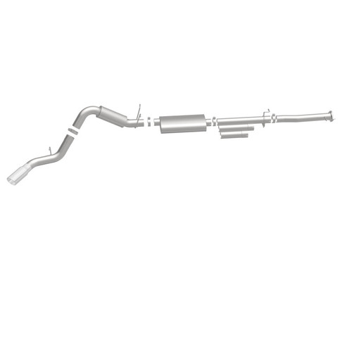 The MagnaFlow Street Series Cat-Back Performance Exhaust System 19026 brings out the personality of your Truck with our signature resonant, powerful engine tone and dyno-proven performance. Thanks to its fast-flowing, mandrel bent 4in. main piping and 2 Straight-Through mufflers ending in a Single Passenger Side Rear exit with 5in. Polished Welded-On Double Wall Angle Cut Rolled Edge tips, this Truck exhaust kit has the performance chops to match its sporty sound and appearance. Upgrade your ride to the next level with an exhaust that has the pipes to put other Truck's to shame. With this system your vehicle will be producing Moderate exterior and Mild interior sound levels while leaving other cars and trucks feeling envious at every stoplight. Exhaust kit 19026 features a cat-back layout that replaces your ride's stock exhaust components from near the catalytic converter on back. Extensive 3D scanning during development has resulted in a direct-fit design that you can easily install yourself. 19026 is produced using CNC precision robotic manufacturing techniques and is backed by MagnaFlow's 1-year limited finish warranty and limited lifetime construction warranty.