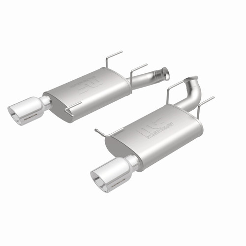 The MagnaFlow 2011-2012 Ford Mustang Street Series Axle-Back Performance Exhaust System 15595 brings enhanced engine sound and dyno-proven performance to your 3.7L 2011-2012 Ford Mustang with a healthy helping of our deep, resonant signature exhaust note at Moderate exterior and Mild interior sound levels. Thanks to its durable, corrosion resistant stainless steel design, this Ford Mustang exhaust system will handle whatever tarmac you decide to leave your mark on. This performance exhaust kit features an axle-back layout designed to replace your Ford Mustang's exhaust system from near the rear axle on back. With its fast-flowing, mandrel bent 2.5in. main piping and 2 Straight-Through mufflers ending in a Dual Split Rear exit with 4in. Polished Welded-On Double Wall Angle Cut Rolled Edge tips, your ride will be sounding as awesome as it looks. Extensive 3D scanning during development has resulted in a direct-fit design that you can easily install yourself. 15595 is produced using CNC precision robotic manufacturing techniques and is backed by MagnaFlow's 1-year limited finish warranty and limited lifetime construction warranty.