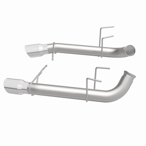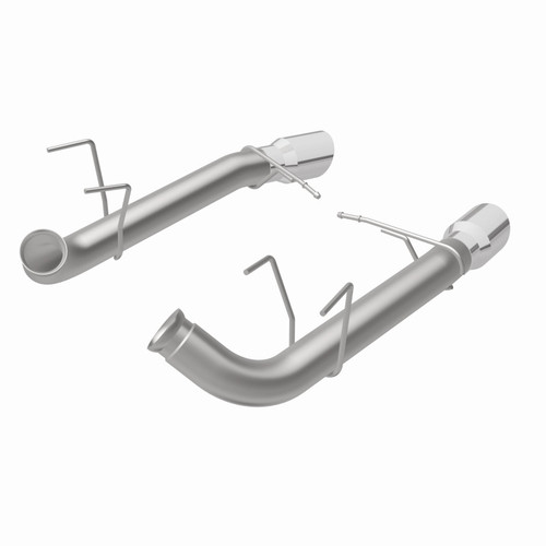The MagnaFlow 2011-2012 Ford Mustang Race Series Axle-Back Performance Exhaust System 15594 doesn't leave any performance on the table with a race-ready, light weight, dyno-proven design ready to help your 5.0L, 5.4L 2011-2012 Ford Mustang take on any pretenders, whether on the track or the street. Exhaust kit 15594 is engineered to produce our powerful, resonant signature exhaust note at Very Aggressive exterior and Aggressive interior sound levels with an axle-back layout that replaces your vehicle's exhaust components from near the rear axle on back. Please check to ensure compliance with local noise regulations. This Ford Mustang exhaust kit features fast-flowing mandrel bent 3in. diameter main piping that ends in a Dual Split Rear exit with 4in. Polished Welded-On Double Wall Angle Cut Folded Edge tips. Extensive 3D scanning during development and the use of advanced CNC precision robotic manufacturing techniques ensures that 15594's direct-fit design fits so perfectly that you can easily install the system yourself. The durable, corrosion resistant stainless steel construction of exhaust system 15594 is backed by MagnaFlow's limited lifetime warranty.