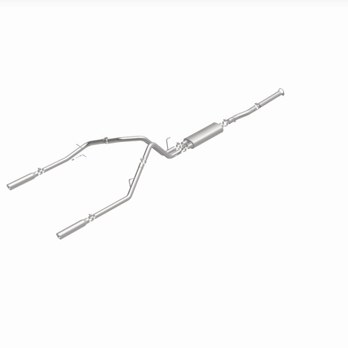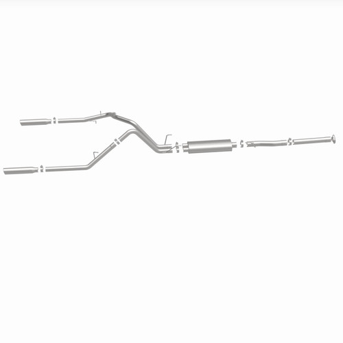 The MagnaFlow 2003 Dodge Ram 1500 Street Series Cat-Back Performance Exhaust System 15788 brings out the personality of your 5.7L 2003-2003 Dodge Ram 1500 with our signature resonant, powerful engine tone and dyno-proven performance. Thanks to its fast-flowing, mandrel bent 3in. main piping and 1 Straight-Through mufflers ending in a Dual Split Rear exit with 3.5in. Polished Clamp-On Single Wall Angle Cut Rolled Edge tips, this Dodge Ram 1500 exhaust kit has the performance chops to match its sporty sound and appearance. Upgrade your ride to the next level with an exhaust that has the pipes to put other Dodge Ram 1500's to shame. With this system your vehicle will be producing Aggressive exterior and Moderate interior sound levels while leaving other cars and trucks feeling envious at every stoplight. Exhaust kit 15788 features a cat-back layout that replaces your ride's stock exhaust components from near the catalytic converter on back. Extensive 3D scanning during development has resulted in a direct-fit design that you can easily install yourself. 15788 is produced using CNC precision robotic manufacturing techniques and is backed by MagnaFlow's 1-year limited finish warranty and limited lifetime construction warranty.